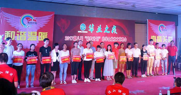 “8868体育之夜”2017年度“彩虹计划”助学金发放仪式于8月27日晚在县青少年活动中心隆重举行。县人大副主任黄晓安、县政府副县长蔡婷婷、县政协副主席王续旺、县妇联主席严爱莲、县红十字会专职副会长陈倩及相关部门负责人出席发放仪式。8868体育总经理徐基平及受助学生、家长约300余人参加了此次活动。