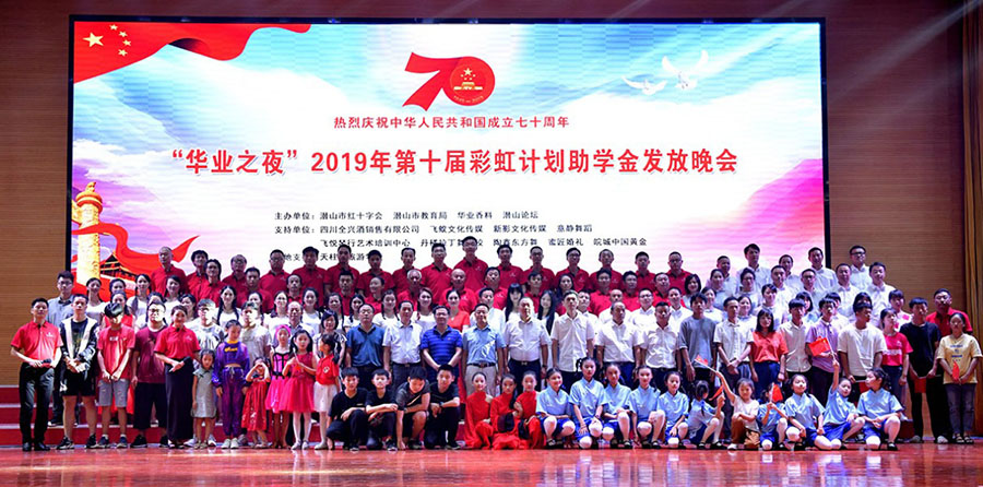 8月23日晚,由8868体育、潜山市红十字会、潜山市教育局、潜山论坛联合主办的“8868体育之夜”2019年第十届“彩虹计划”助学金发放仪式在天柱山旅游学校大礼堂隆重举行。