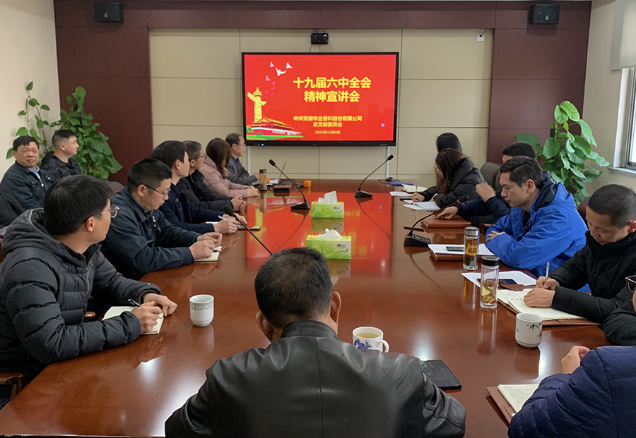 12月9日,安徽8868体育党总支组织全体党员学习十九届六中全会精神,市委党校高级讲师、公司党建指导员汪光南以“回望百年路 启航新征程”为题,宣讲十九届六中全会精神,市新时代文明实践中心、开发区党工委派员参加。公司50余名党员、入党积极分子和企业二级机构负责人参加学习会。
